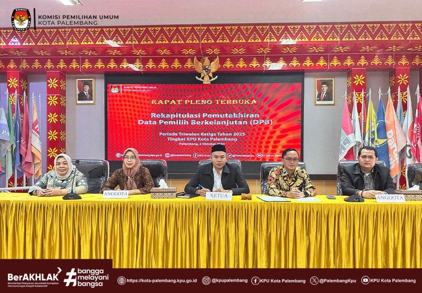 KPU Kota Palembang melakukan Rapat Pleno Terbuka Rekapitulasi Pemutakhiran Data Pemilih Berkelanjutan (DPB) Triwulan III Tahun 2025