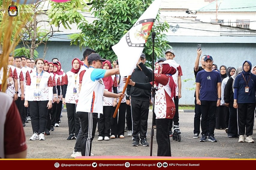 #Temanpempilih Palembang, Minggu (5/10/2025)– Ketua Dewan Pengurus KORPRI Sekretariat Jenderal Komisi Pemilihan Umum, Bapak Suryadi melepas 26 kontingen KORPRI KPU yang akan berlaga pada Pekan Olahraga Nasional (PORNAS) XVII KORPRI Tahun 2025 yang diselenggarakan di Provinsi Sumatera Selatan Mulai Tanggal 5-11 Oktober 2025 dengan mengusung semangat “Berprestasi, Sehat, dan Bersatu untuk Indonesia”. Kontingen KORPRI Setjen KPU akan mengikuti Lima cabang olahraga, yakni tenis meja, bulu tangkis, futsal, catur, dan senam korpri. Apel pelepasan kontingen berlangsung dengan penuh semangat dan kebersamaan di lingkungan Sekretariat KPU, dihadiri oleh Ketua KPU Sumsel, Bapak Andika Pranata Jaya, Sekretaris KORPRI Setjen KPU, Ibu Yuli Hertaty, Ketua Bidang Olah Raga, Bapak Ilham, Ketua Kontingen, Ibu Hj. Haslinda serta sekretariat KPU Sumsel, KPU Kota Palembang, KPU Kabupaten Ogan Ilir. Dalam sambutannya Ketua KORPRI KPU menyampaikan apresiasi kepada para pegawai yang terpilih menjadi bagian dari kontingen KORPRI Setjen KPU. Ia menegaskan bahwa keikutsertaan ini bukan hanya ajang olahraga semata, tetapi juga bentuk penguatan semangat solidaritas, sportifitas, dan kebanggaan sebagai bagian dari keluarga besar KPU. “Keikutsertaan dalam PORNAS XVII KORPRI menjadi momentum penting untuk menunjukkan bahwa ASN KPU tidak hanya profesional dalam menjalankan tugas kepemiluan, tetapi juga memiliki semangat juang dan jiwa sportifitas yang tinggi,” ujarnya. Ketua kontingen KORPRI menambahkan bahwa pihaknya telah melakukan berbagai persiapan termasuk latihan rutin bagi para atlet. “Kami berharap, keikutsertaan ini dapat mempererat tali silaturahmi antarinstansi, sekaligus menjadi ajang pembuktian bahwa ASN KPU juga mampu berprestasi di bidang olahraga,” ujarnya. Acara pelepasan ditutup dengan sesi foto bersama dan yel-yel penyemangat dari seluruh peserta yang menggema penuh antusias diiringi dengan pelepasan balon. Seluruh jajaran KPU berharap kontingen KORPRI Setjen KPU dapat meraih hasil terbaik dan membawa pulang prestasi membanggakan. #KPUMelayani ....