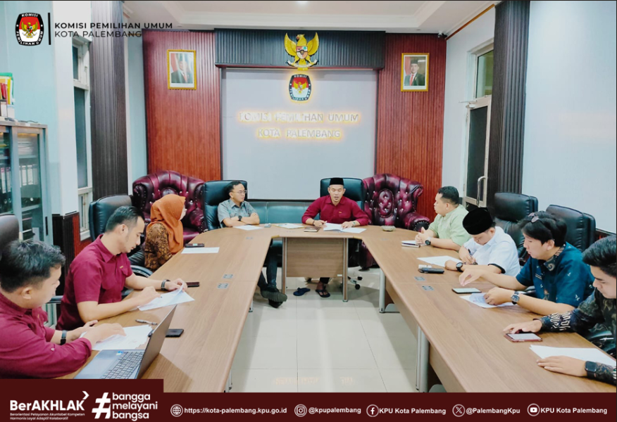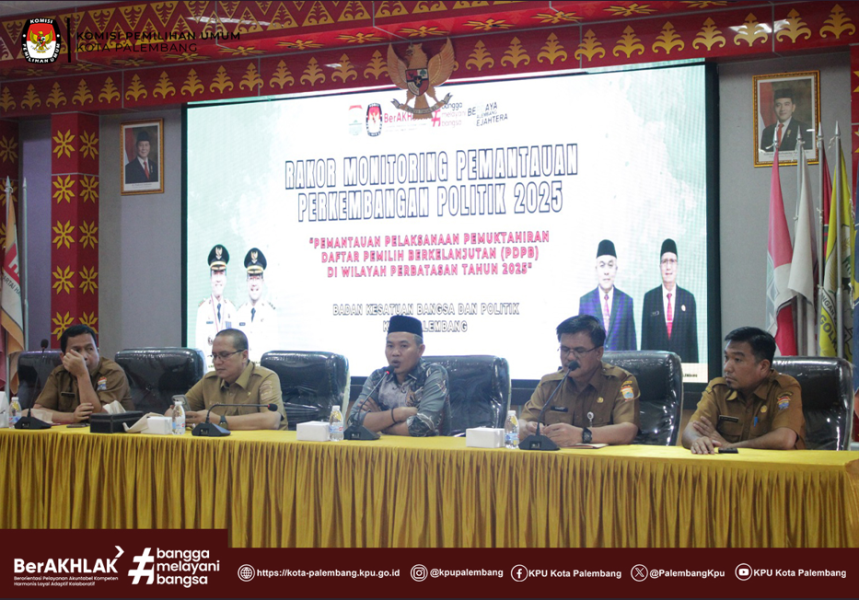 #TemanPemilih, Dalam rangka kegiatan Rakor Monitoring Pemantauan Perkembangan Politik 2025 dengan tema : Pemantauan Pelaksanaan Pemuktahiran Daftar Pemilih Berkelanjutan (PDPB) di Wilayah Perbatasan Tahun 2025 yang di selenggarakan oleh Badan Kesatuan Bangsa dan Politik Kota Palembang dihadiri oleh Ketua dan Anggota KPU Kota Palembang, Kasubbag SDM dan Parmas beserta staf bertempat di Aula Demokrasi, Lantai 3 KPU Kota Palembang. #KPUMelayani ....
