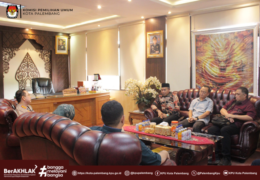 Ketua dan Anggota KPU Kota Palembang di dampingi Kepala Subbagian Keuangan, Umum dan Logistik Melaksanakan Audiensi dengan Polrestabes Palembang