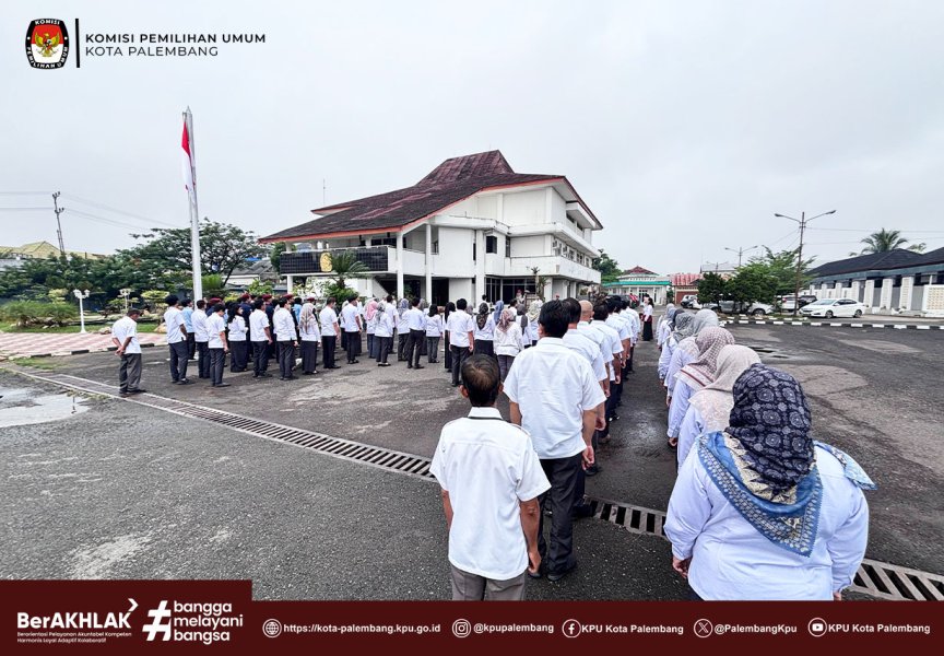 KPU Kota Palembang Melaksanakan Apel Pagi di lingkungan sekretariat KPU Provinsi Sumatera Selatan