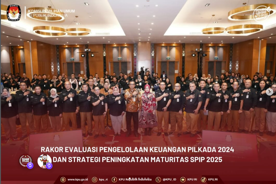 #TemanPemilih, KPU memandang pengelolaan keuangan merupakan salah satu aspek krusial yang sangat menentukan akuntabilitas penyelenggaraan Pilkada. Hal tersebut disampaikan Anggota KPU Iffa Rosita yang hadir bersama Sekretaris Jenderal KPU Bernad Dermawan Sutrisno pada pembukaan Rapat Koordinasi dalam Rangka Evaluasi Hasil Pengawasan atas Pengelolaan Keuangan Pilkada 2024 pada Wilayah Daerah Otonomi Baru (DOB) dan Percepatan Tindak Lanjut Hasil Pemeriksaan BPK serta Strategi Meningkatkan Hasil Evaluasi Maturitas SPIP Tahun 2025, di Jakarta, Rabu (10/12/2025). Iffa juga mengatakan, evaluasi bukan sekadar kegiatan administratif melainkan bagian dari upaya strategis untuk memastikan bahwa setiap rupiah anggaran negara digunakan secara efektif, efisien, ekonomis dan sesuai ketentuan serta dapat dipertanggungjawabkan. Bernad dalam arahannya menekankan, seluruh peserta rapat harus serius, karena rapat ini adalah forum efektif untuk merumuskan tindak lanjut rekomendasi BPK. Ia berharap apa yang dilakukan hari ini dapat berdampak positif ke depan. Setelah pembukaan, kegiatan dilanjutkan dengan penyampaian arahan dan materi oleh Inspektur Utama Setjen KPU Nanang Priyatna dan narasumber dari BPKP. Turut hadir Pejabat Eselon 1 dan 2 Setjen KPU, serta peserta dari sekretariat KPU Provinsi seluruh Indonesia. #KPUMelayani