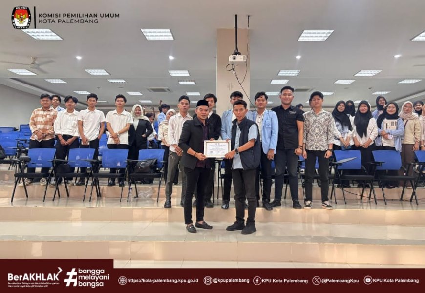 #TemanPemilih, Ketua KPU Kota Palembang, Syawaludin, S.H.I., M.H, Riandy Akbar Pohan, S.H Divisi Hukum dan Pengawasan dan Arman Darmawan, M.Pd, Divisi Perencanan, Data dan Informasi serta di dampingi Kasubbag SDM dan Parmas, Hj. Triananda Rindha Agustina, S.H., M.H S menerima Audiensi Barak 106 Barisan Rakyat 1 Juni Provinsi Sumatera Selatan mengenai Penanaman nilai - nilai Pancasila untuk membangun Generasi Bangsa yang Berkarakter dalam Meningkatkan Kualitas Pemilih di Pemilu dan Pilkada.