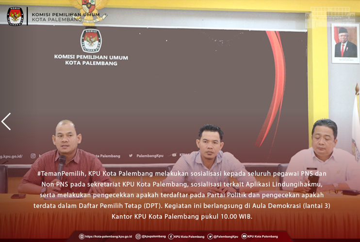 Turut hadir dalam Acara Ketua dan Anggota KPU Kota Palembang, Kepala Subbagian masing-masing serta Seluruh Staf dan PPNPN Sekretariat KPU Kota Palembang, Kesbangpol Kota Palembang, Ketua Bawaslu Kota Palembang, Camat Ilir Timur I, Kapolsek Ilir Timur I, Koramil 418-06 Kamboja, UPTD Dinas Pendidikan Kec Ilir Timur I, Kantor Urusan Agama Ilir Timur I dan Lurah 20 Ilir Kota Palembang.
