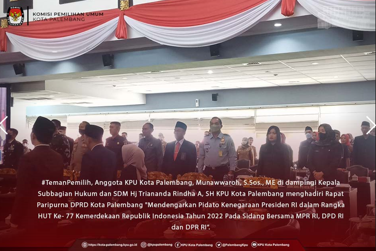 PALEMBANG - #TemanPemilih, KPU Kota Palembang Melaksanakan Acara Kegiatan Dalam Rangka Memeriahkan Hari Ulang Tahun Republik Indonesia ke 77 Tahun.