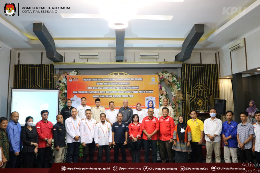 PALEMBANG - KPU Kota Palembang Bersama Badan Kesatuan Bangsa dan Politik (bankesbangpol) mengelar acara Sosialisasi Pendaftaran Peserta Pemilu dan Pilkada Kepada Partai Politik tingkat Kota Palembang.