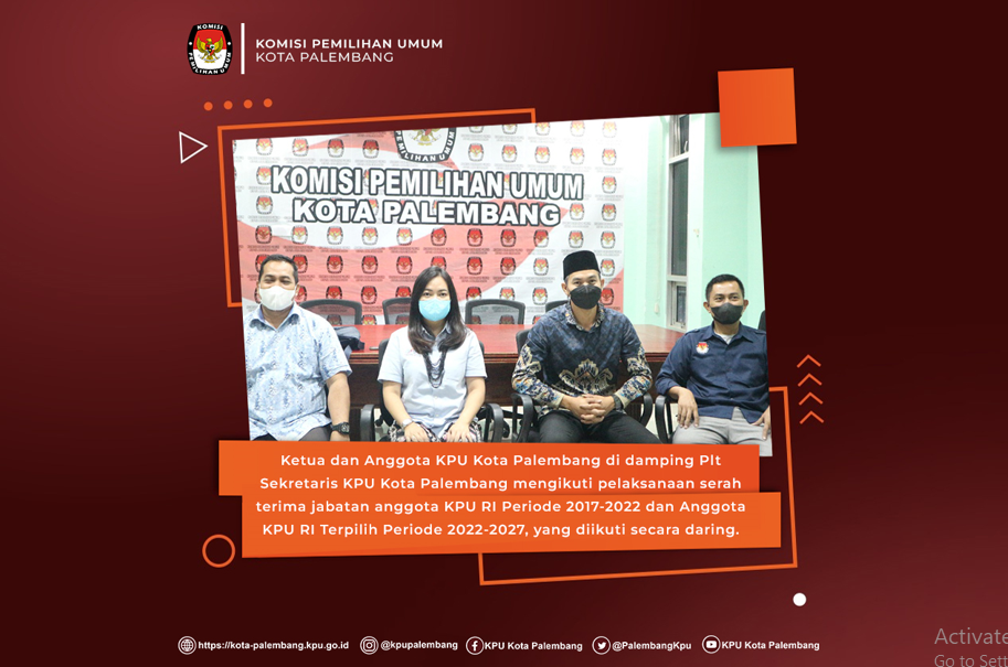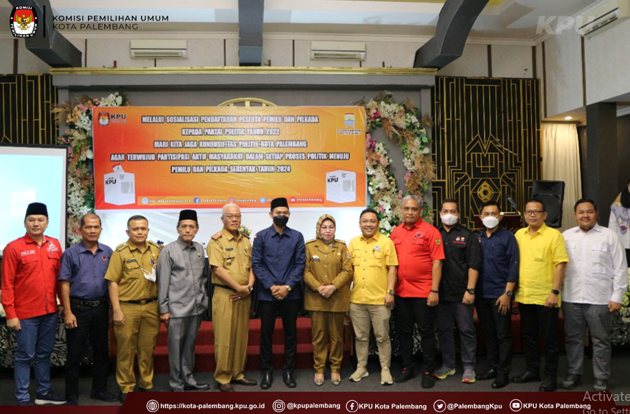 Palembang - KPU Kota Palembang bersama Badan Kesatuan Bangsa dan Politik (Bankesbangpol) Kota Palembang menggelar acara sosialisasi peserta pemilu dan pilkada pada partai politik tahun 2022 dengan Tema "Mari Kita jaga kondusifitas politik Kota Palembang agar terwujud partisipasi aktif masyarakat dalam setiap proses politik menuju pemilu dan pilkada serentak tahun 2024”.