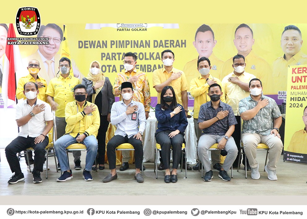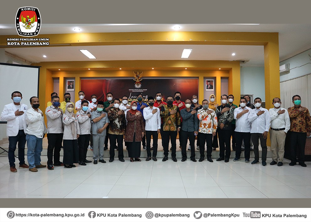 PALEMBANG - Sehubungan telah ditetapkan Keputusan KPU RI Nomor 21 Tahun 2022 tentang Hari dan Tanggal Pemungutan Suara pada Pemilihan Umum Serentak Tahun 2024 dan Surat Sekretaris Jenderal KPU RI Nomor 310/PP.07-SD/09/2022 Tentang Launching Hari Pemungutan Suara Pemilu Serentak Tahun 2024. Maka KPU Kota Palembang mengadakan kegiatan nonton bersama Launching Hari Pemungutan Suara Pemilu Serentak Tahun 2024 yang bertempat di Aula Demokrasi, yang diihadiri oleh Bawaslu Kota Palembang, Pemerintah Kota Palembang/ Forkopimda, Pimpinan Partai Politik Tingkat Kota Palembang Peserta Pemilu Tahun 2019 dan Pemangku Kepentingan lainnya.