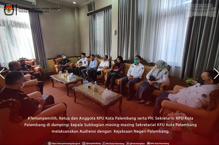 KPU Kota Palembang mengucapkan selamat dan sukses atas dilantiknya Pejabat Administrasi di Lingkungan Sekretariat KPU Provinsi Sumatera Selatan yaitu Abdullah, SH, MA sebagai Kepala Bagian Hukum dan SDM, Hj. Ferlyna Threesia, S.Pd, M.Si sebagai Kepala Bagian Keuangan, Umum dan Logistik, Erland Evriansyab, SH, MH sebagai Kepala Bagian Teknis Penyelenggaraan Pemilu, Partisipasi dan Hubungan Masyarakat, Akhmad Zakir, S.Sos, MAP sebagai Kepala Bagian Perencanaan, Program dan Data.