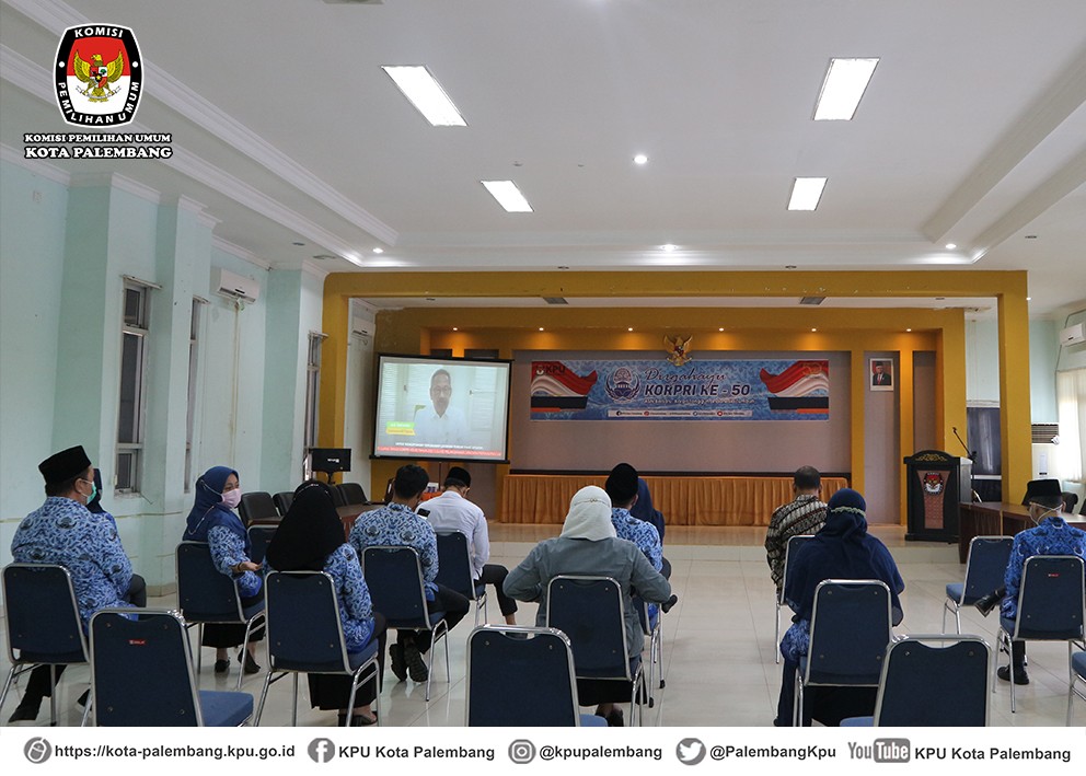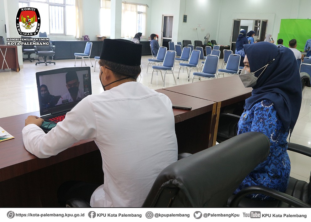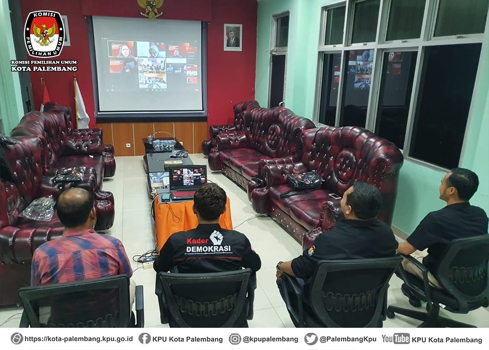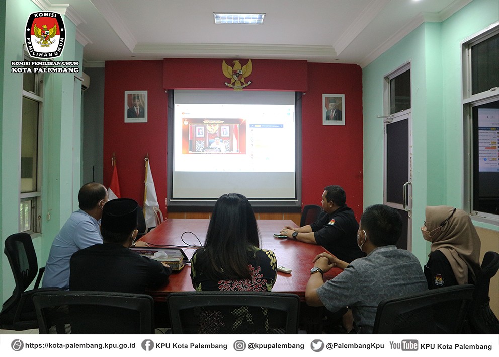 PALEMBANG - KPU Kota Palembang mengikuti webinar Knowledge Sharing Digitalisasi Pemilu Seri IV: Membangun Satu Data Pemilu untuk Satu Data Indonesia, webinar ini diikuti oleh Ketua dan Anggota KPU Kota Palembang melalui zoom meeting.