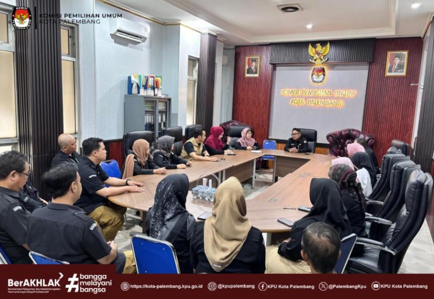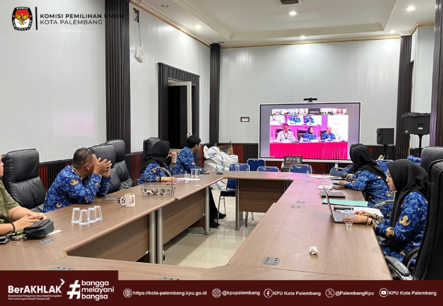 #TemanPemilih, Anggota KPU Kota Palembang, Riandy Akbar Pohan, S.H, Sekretaris KPU Kota Palembang, Dra. Dirta Sarina, M.M, Kasubbag Teknis dan Hukum, Muhammad Rais, S.Sos., M.P.A dan juga staf Teknis dan Hukum, menghadiri Zoom Meeting Rapat Koordinasi Penguatan Kapasitas Tim Asesor Unit Kerja Penilaian Mandiri Maturitas Penyelenggaraan SPIP Terintegrasi.