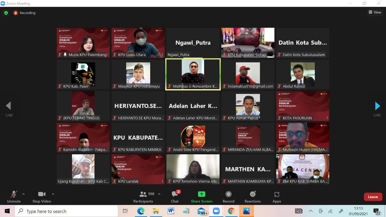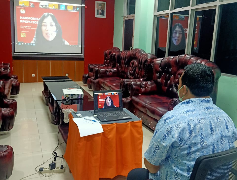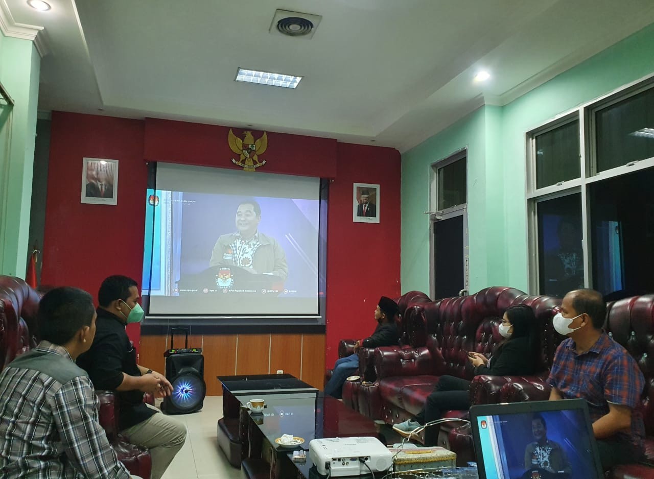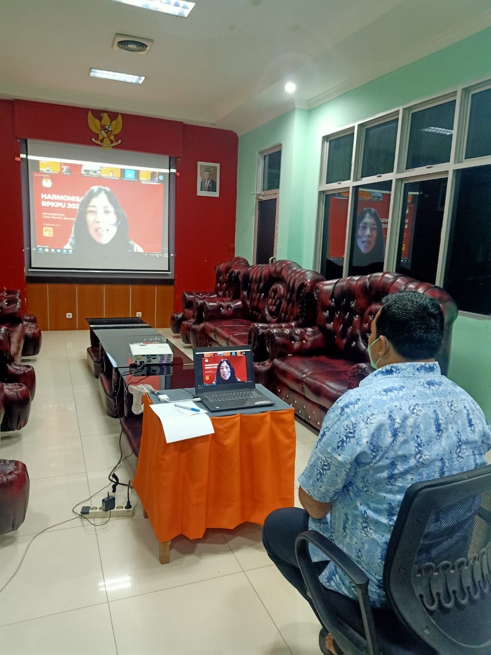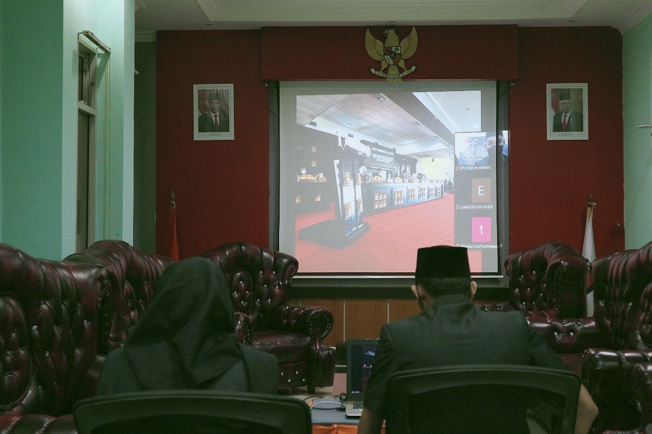 PALEMBANG - KPU Kota Palembang Divisi Hukum dan Pengawasan mengikuti zoom meeting tentang pemberitahuan pemasangan JDIH KPU Kabupaten/Kota Provinsi Sumatera Selatan.