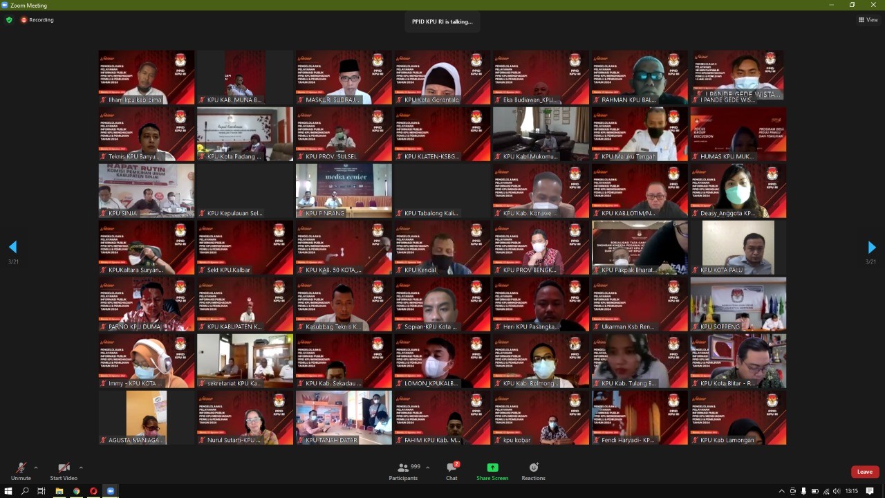 PALEMBANG - KPU Kota Palembang mengikuti Webinar mengenai Pengelolaan dan Pelayanan Informasi Publik PPID dalam menghadapi Pemilu dan Pemilihan Tahun 2024. Kegiatan ini dilaksanakan secara virtual melalui zoom meeting pada pukul 13.00 WIB dan dapat disaksikan pula melalui live streaming di Youtube KPU RI. Webinar ini dibuka langsung oleh Ketua KPU RI, Ilham Saputra dan dihadiri pula sebagai narasumber yakni Ketua Komisi Informasi Pusat, Gede Narayana dan Anggota KPU RI, I Dewa Kade Wiarsa Raka Sandi. Ketua Komisi Informasi Pusat, Gede Narayana menyampaikan pula mengenai Dasar Hukum tentang Keterbukaan Informasi Publik dan tentang Standar Layanan dan Prosedur Penyelesaian Sengketa Informasi Pemilihan Umum dan Pemilihan. Adapun yang diatur dalam PKPU No.1 Tahun 2015 yaitu mengenai Ketentuan Umum PPID, Asas dan Tujuan Layanan Informasi Publik, Hak dan Kewajiban, Kategori Informasi Publik, Informasi yang dikecualikan, Pejabat Pengelola Informasi dan Dokumentasi, Tata Cara Layanan Informasi Publik, Keberatan, Pelaporan dan Formulir Layanan Informasi Publik. (KPU/wik)