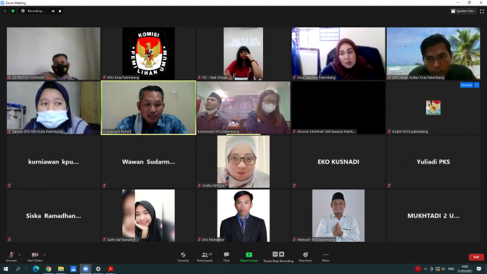 PALEMBANG – KPU Kota Palembang melakukan Rapat Koordinasi (Rakor) Rekapitulasi Daftar Pemilih Berkelanjutan (DPB) Triwulan I Tahun 2021 secara virtual melalui Zoom Meeting, Rabu (31 Maret 2021).